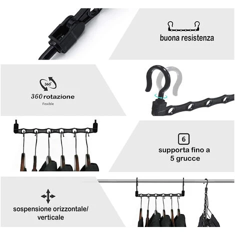- Su ogni appendi gruccia è possibile appendere 5 grucce ( non incluse)