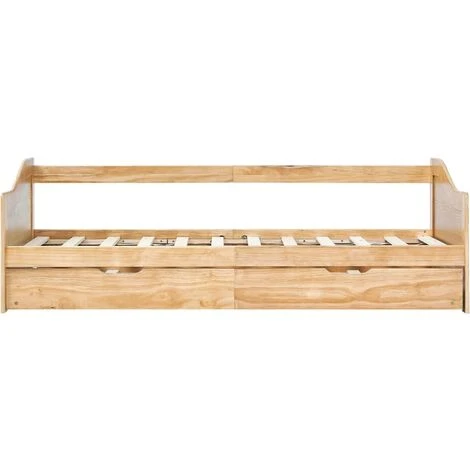 Combinando il lusso di un divano con la comodità di un letto per ospiti, il nostro divano letto a scomparsa multifunzionale sarà sicuramente un’aggiunta pratica e accattivante a qualsiasi interno! Caratterizzato da un letto inferiore estraibile dotato di 4 ruote, il mobile può essere facilmente convertito in un divano durante il giorno e un comodo letto di notte. La struttura del divano letto massimizza lo spazio disponibile sul pavimento offrendo allo stesso tempo spazio per due posti a sedere, rendendolo la scelta ideale per le persone che vivono in un ambiente dallo spazio limitato. Inoltre, il letto inferiore è dotato di una sponda che impedisce all’utente di rotolare durante il sonno. L’intero telaio del letto è dotato di una robusta struttura in legno, che lo rende molto resistente e adatto all’uso quotidiano. L’articolo è facile da montare. La consegna include esclusivamente il telaio del letto, i materassi non sono inclusi. E’ possibile controllare i prodotti presenti nel nostro negozio per trovare i materassi corrispondenti.