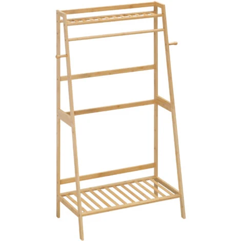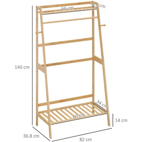Assicurati che la casa sia sempre ordinata e organizzata con questo appendiabiti da terra HOMCOM. Sono presenti 2 ganci e 1 binario per appendere cappotti, sciarpe e borse, mentre 2 ripiani aperti servono per riporre cestini ed espositori. Inoltre, la struttura in bambù naturale rende questo mobile appendiabiti rustico un’ottima aggiunta all’ingresso, al soggiorno e alla camera da letto. Sarà un ottimo complemento per il tuo arredamento.