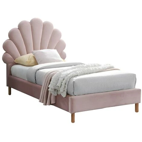 Con la sontuosa testata letto a forma di conchiglia e il rivestimento in velluto Rosa, il letto MOANA donerà charme alla tua camera. Di ispirazione vintage, questo letto dispone di piedi conici in legno massello e di un’imbottitura in schiuma di poliuretano. per un comfort e una solidità eccezionali.