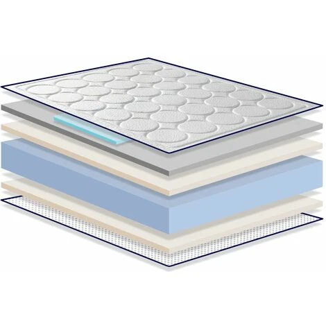 - Nucleo in schiuma rigida e ad alta densità. Agisce come un supporto perfetto per lo strato superiore in memory foam. Aiuta a una buona circolazione dell’aria durante il riposo. Ergonomico.