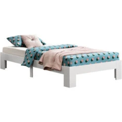 Nova Letto In Legno Di Pino Con Rete A Doghe Design Minimal Bianco Varie Misure Colore : 90 X 200 Cm