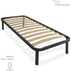 Qualydorm Rete In Ferro Con 4 Piedi E Doghe In Legno Cm Letto 80×190 H35 Per Materasso Da Una Piazza