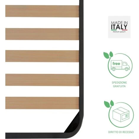 – Rete Ortopedica Modello Classic a doghe di Betulla, Matrimoniale, due piazze misura 160×190 alta 35 cm (struttura 4cm; piedi 31cm), completa di piedi avvitabili. Struttura in acciaio di nuova generazione con doppia barra di rinforzo centrale dotata di materiale ammortizzante anti-rumore, progettata per offrire un migliore sforzo alla compressione e renderla indicata anche per persone sovrappeso e aumentarne la durata negli anni.