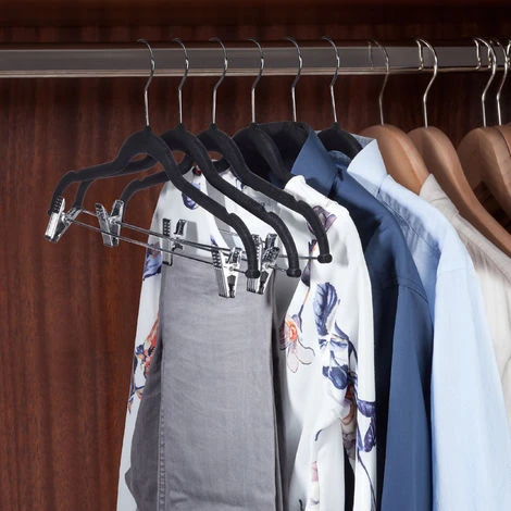 Dimentica l’ingombro e il caos con i nostri appendiabiti multipli con clip. Organizza le tue gonne e camicie preferite in modo pratico e intelligente. Grazie al rivestimento in velluto antiscivolo, i tuoi capi saranno al sicuro da graffi e scivolamenti indesiderati. Le tacche laterali ti permetteranno di appendere i vestiti in modo ordinato, senza sovrapporli. Le pinze scorrevoli garantiscono una tenuta sicura, senza sgualcire i tuoi abiti. E il gancio in metallo girevole a 360° rende tutto più semplice e comodo. Ottieni un guardaroba impeccabile con facilità e stile grazie a questi appendiabiti multipli con clip!