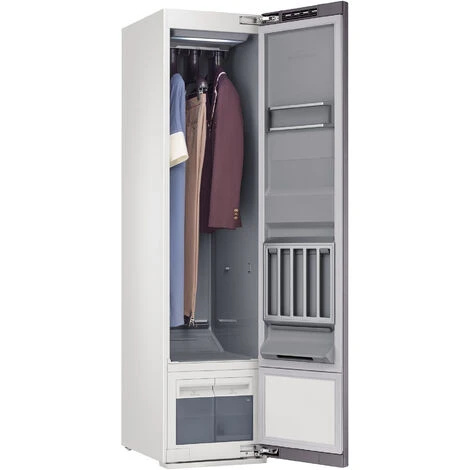 Samsung Airdresser Cabina Armadio DF60R8600CG/LE. Adatto per materiali: Acetato Acrilico Cotone Denim Vera pelliccia Vera pelle Lino Nylon Poliestere Poliuretano… Colore del prodotto: Specchio Emissione acustica: 43 dB. Potenza: 1850 W Tensione di ingresso AC: 220 – 230 V Frequenza di ingresso AC: 50 Hz. Larghezza: 445 mm Profondità: 615 mm Altezza: 1850 mm. Capacità: 3 Giacche + 3 Pantaloni / 5 Giacche + 2 Pantaloni