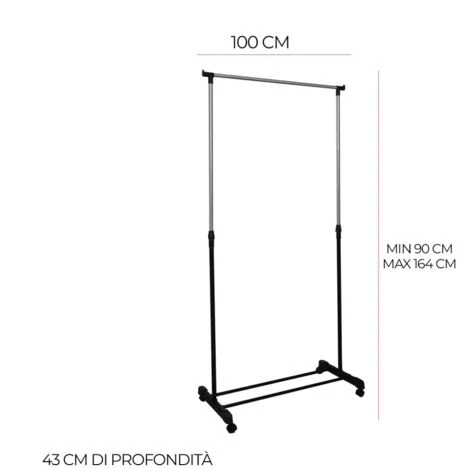Misure dell’appendiabiti: 80 x 43 x 90 cm allungabile fino a 164 cm.