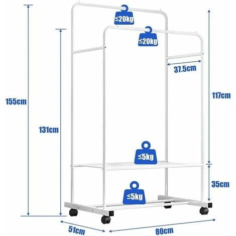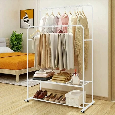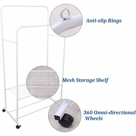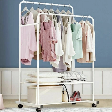 - ALTA QUALITÀ: Il materiale del portaabiti da camera con ruote è adottato ferro antiruggine robusto e stabile, i design a doppi gambi durevoli ed ispessiti può contenere più vestiti, le barre alte ebasse sono adatte per vestiti di diverse lunghezze, non facile da deformare e ha una vita maggiore, qualità garantita.