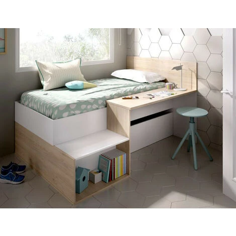 - Compatto ed ideale per i piccoli spazi, in quanto dispone di una ribalta, uno spazio di archiviazione, una scrivania ed un letto tutto in uno.