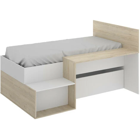 Struttura Letto Lily Bianco opaco e Rovere naturale con scrivania