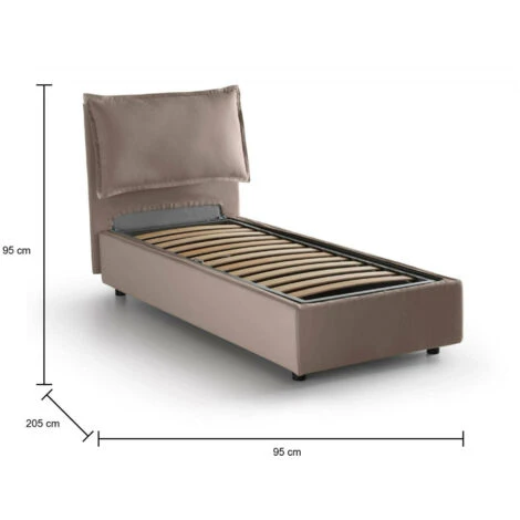 MISURE E APERTURA – Dimensioni letto: Lunghezza 205 x Larghezza 95 x Altezza 95 cm (altezza rete da terra: 32cm) – Apertura contenitore: laterale – Profondità contenitore: 20 cm circa – Altezza dei piedi: 10 cm circa – Fondo del letto in nobilitato con spessore di 1 cm – Adatto per materasso di dimensione: 80×190 cm – Materasso non incluso