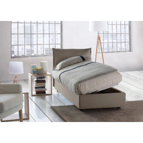 STRUTTURA – La struttura del letto è in fibra di legno rialzata da terra con piedini in ABS ed è rivestita in morbido tessuto di poliestere sfoderabile e lavabile in lavatrice a 30° – La testiera lineare abbinata in tessuto con cuciture a vista, è solida e resistente – La rete a doghe in legno multistrato è inclusa nella struttura – Meccanismo di apertura in ferro – L’aggiunta del pratico box contenitore salvaspazio permette al letto di trasformarsi in uno spazioso cassone per lenzuola, cuscini e piumoni.
