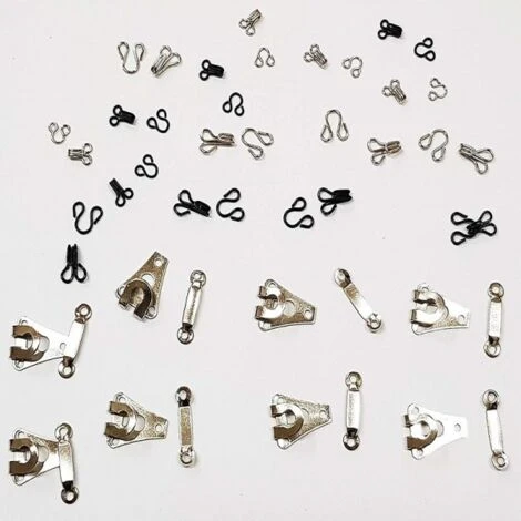 Set 24 Paia Uncinelli Ganci Gancio Gancetti In Acciaio E Nero Per Sarta Abbigliamento Pantaloni Jeans Reggiseno Reggiseni.