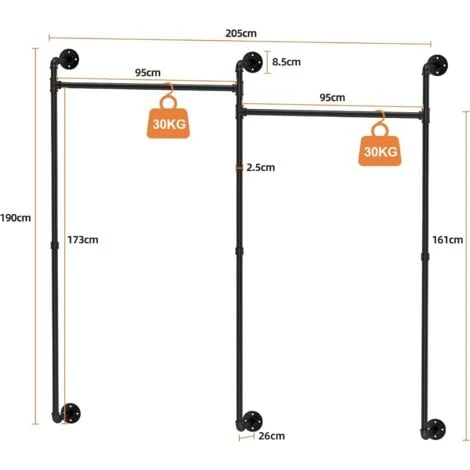 - Con una lunghezza totale di 205 cm, ideale per appendere giubbotti pesanti, soprabiti, gonne, magliette, abiti, pantaloni, ecc.